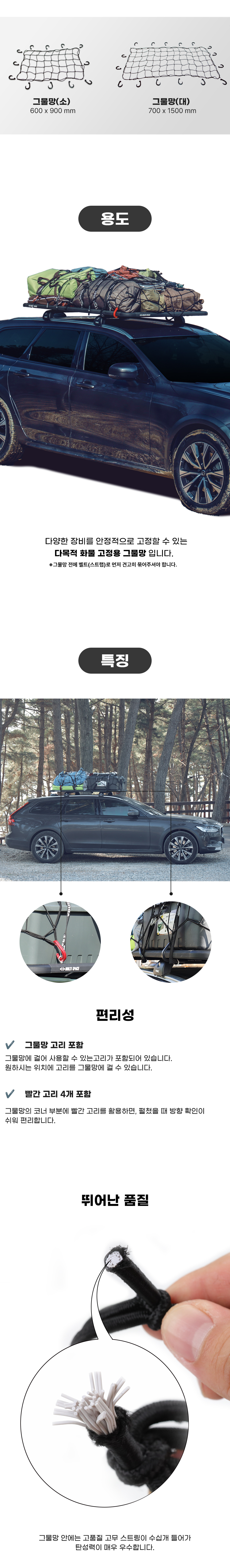 고무줄 재질로 신축성이 있어 여러 크기의 화물을 고정시킬 수 있습니다.