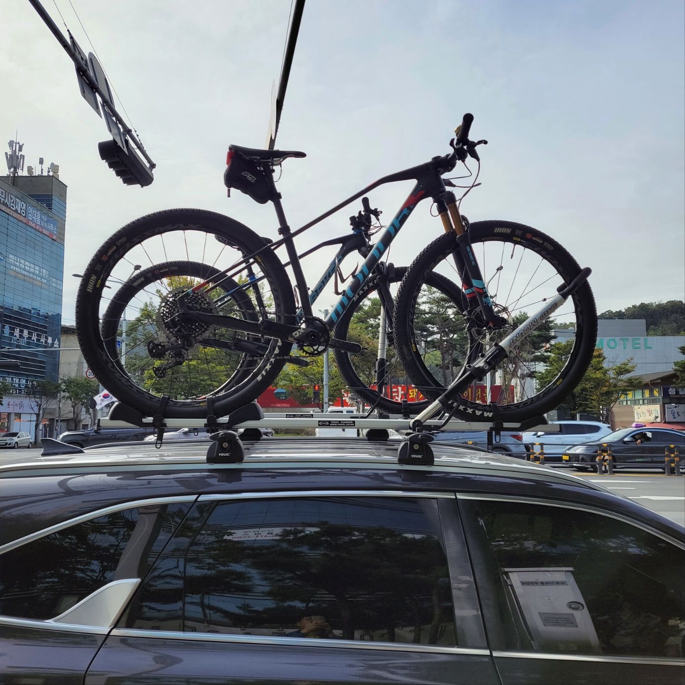 자전거를 지붕형 캐리어에 실었는데 바퀴고정암이 가운데 중앙으로 더이상 올라가지 않아요?