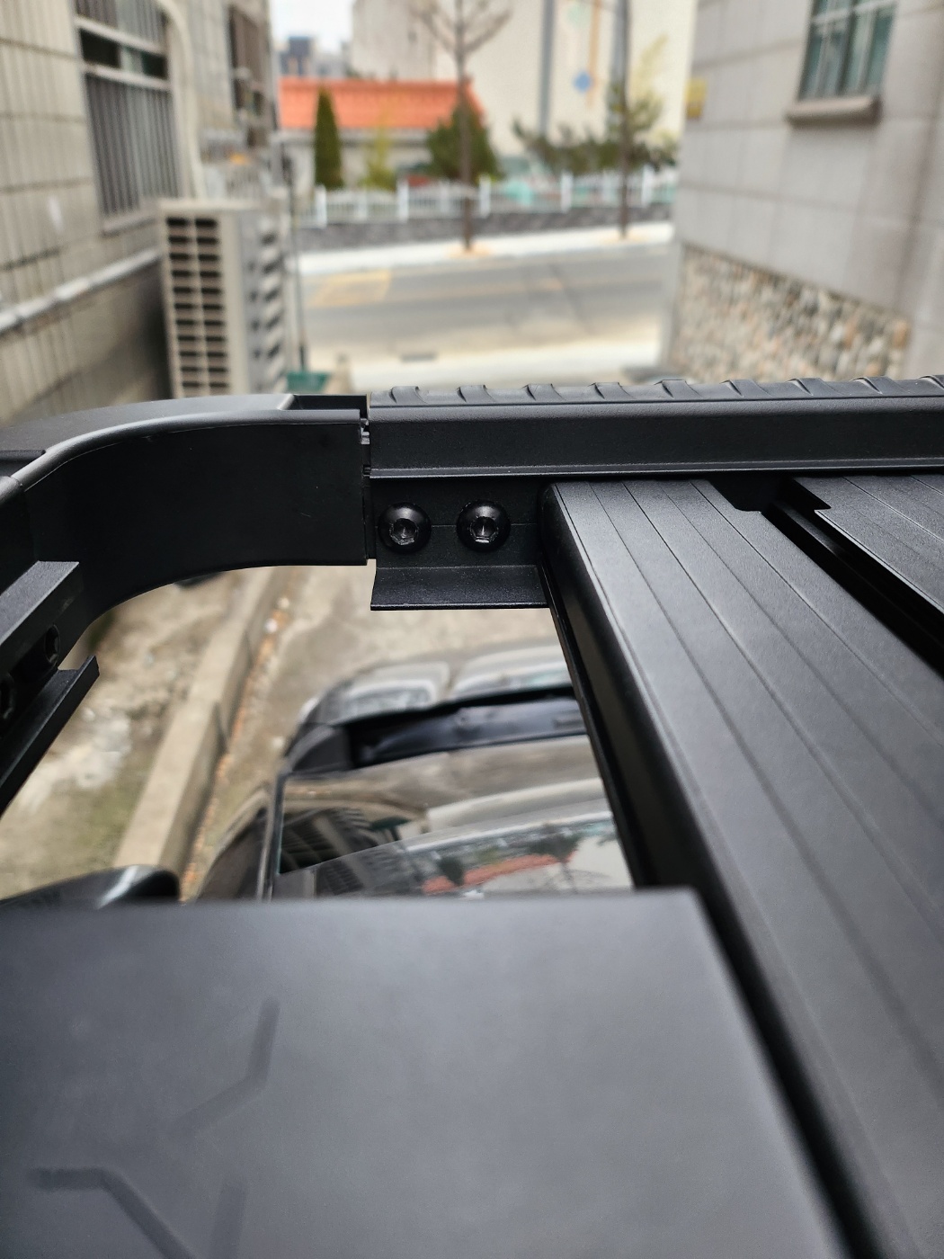 위치에 뚫려있지 않아 볼트 체결시 사진처럼 코너 브라켓과 프론트 바사이에 벌어짐이 발생합