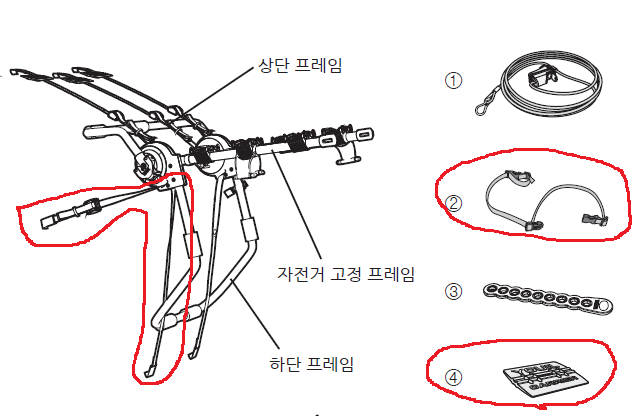 3. 앞바퀴 고정바 받지도 묻지도 못했습니다. 2개 필요합니다.