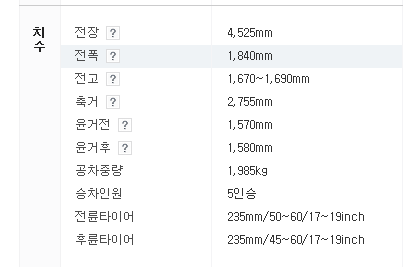 차종별 제원표
