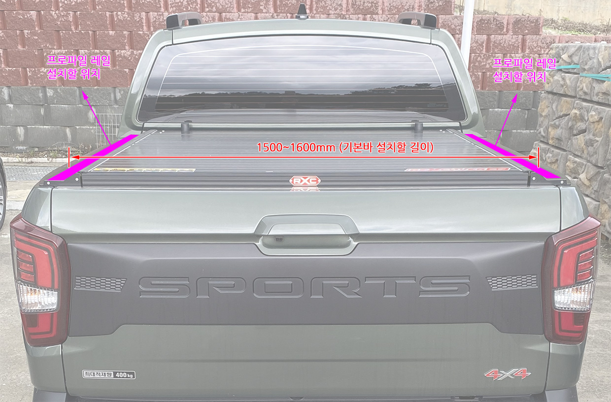 본 제품을 렉스턴 스포츠 적재함 쪽에 별도의 프로파일 레일을 깔고 그 위에 설치해 보고자 합니