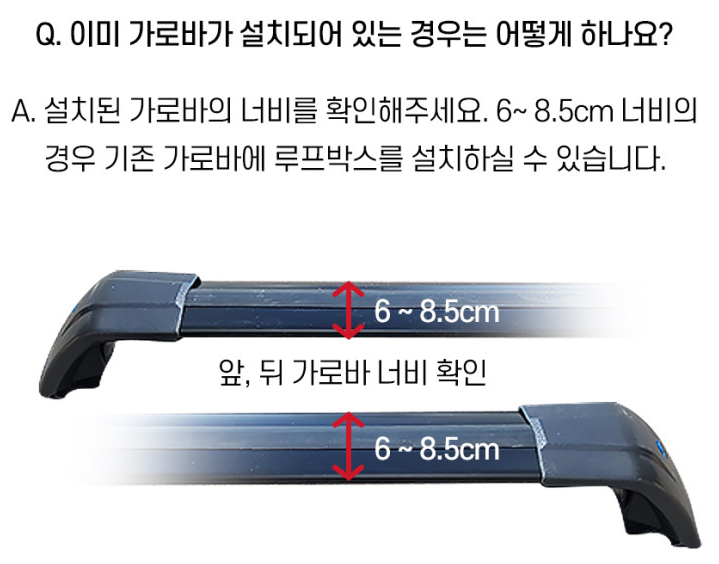 *타사 가로바의 경우 가로바 너비 6cm이상~8.5cm이하 두께는 3cm이하, 가로바 위치 조절 가